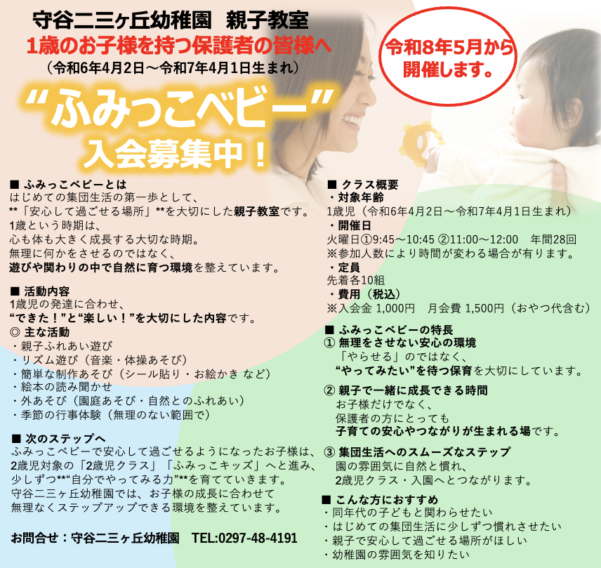 令和8年度 未就園児教室「ふみっこキッズ」入会受付について