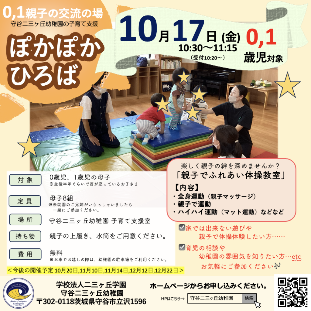 令和7年10月17日(金)ぽかぽかひろば『親子でふれあい体操教室』参加募集開始しました!