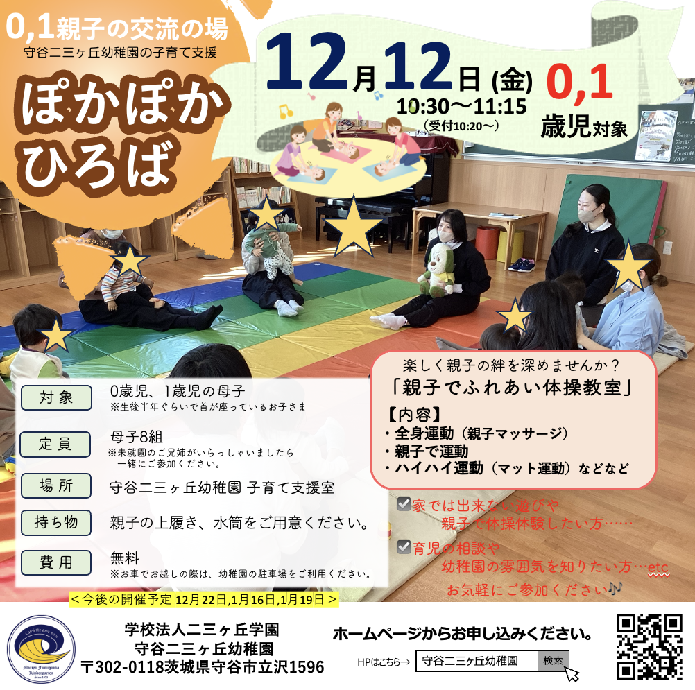 令和7年12月12日(金)ぽかぽかひろば『親子でふれあい体操教室』参加募集開始しました。