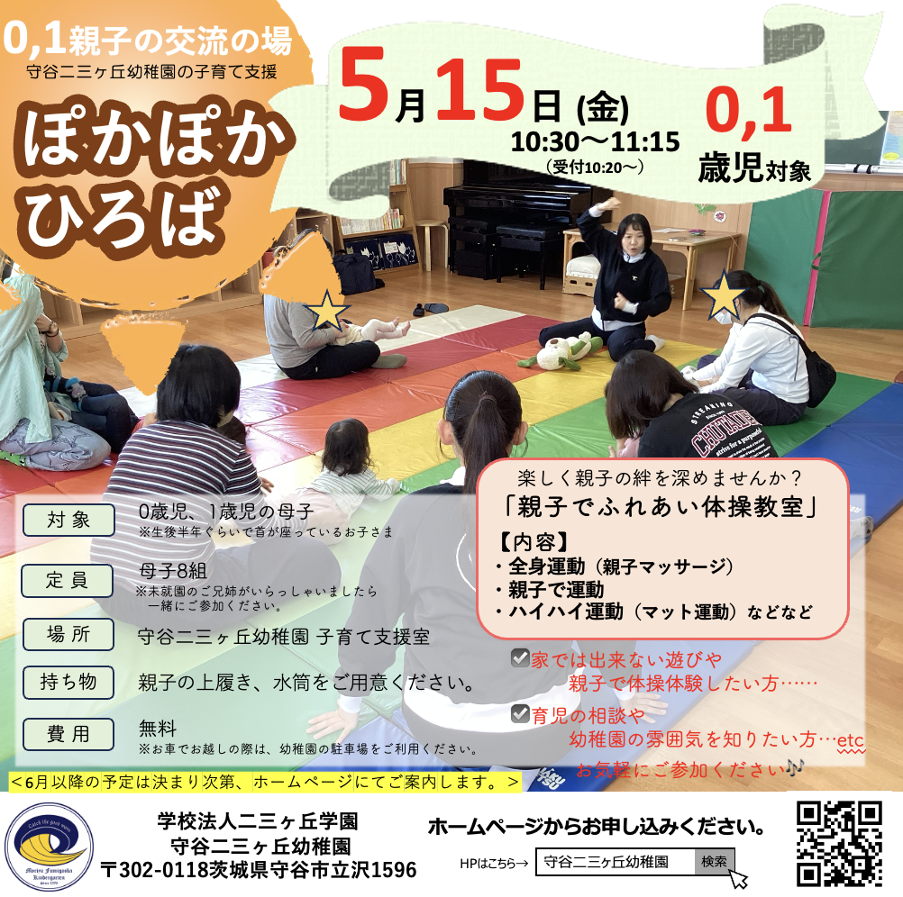 令和8年5月15日(金)ぽかぽかひろば『親子でふれあい体操教室』参加募集開始しました。